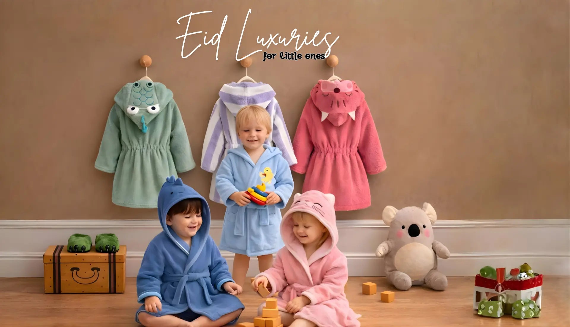 Discover cute, soft, and comfortable bathrobes, ponchos, and blankets for your little ones.