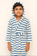 Kids Cotton Velvet Bathrobes (Off-White & Black Stripes)